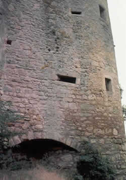 De l’ancienne cuisine on accède à la tour d’angle nord-ouest où l’on observe trois meurtrières permettant de protéger les murs ouest et nord.