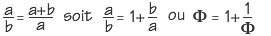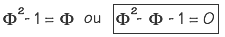 De l'équation précédente on relève deux propriétés intéressantes du nombre d'or :