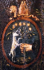 Détail de la Crucifixion (Cathédrale de Mirepoix. Tableau de Larivière-Vesontius commandé au 17e siècle par Pierre de Donault, évêque de Mirepoix. On peut aussi voir ces armes, sur un autre tableau commandé par Pierre de Donault, dans une petite église située près du Lac de Monbel)
