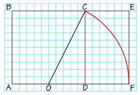 • Un arc de cercle de centre O et de rayon OC coupe le prolongement de AD en F